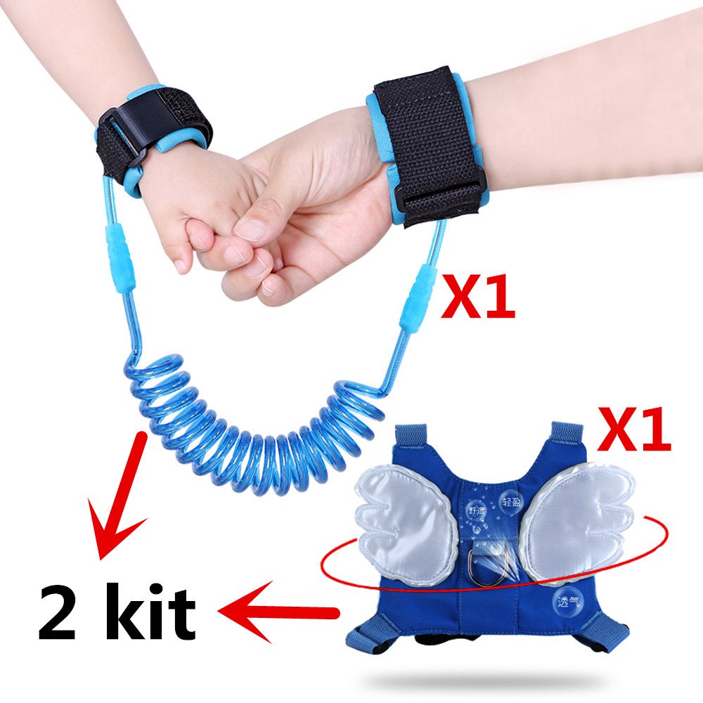 (2 kit)Anti Lost Wrist Link 2 meters Wrist Leash for Kids & Toddlers Child Safety Wristband (Blue)