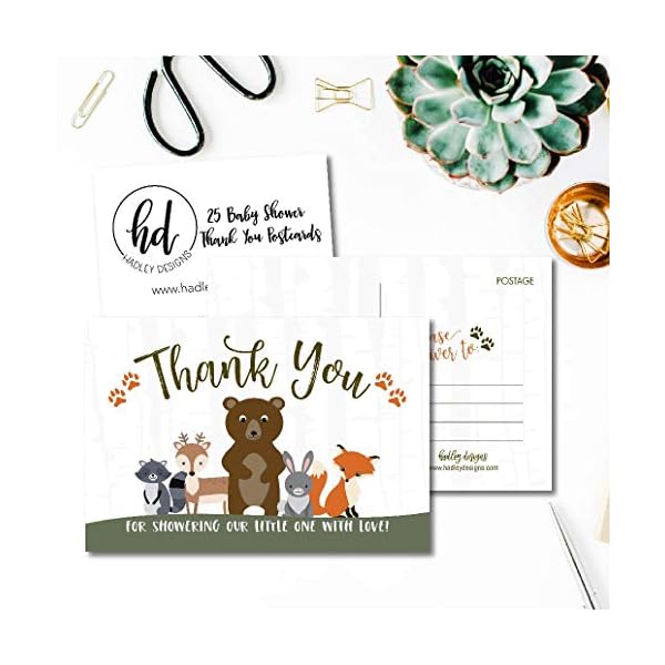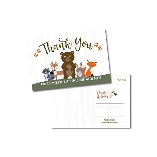 25 Girl or Boy Woodland Baby Shower Thank You Note Card Bulk Set, Blank Cute Animals Gender Reveal Neutral Sprinkle…