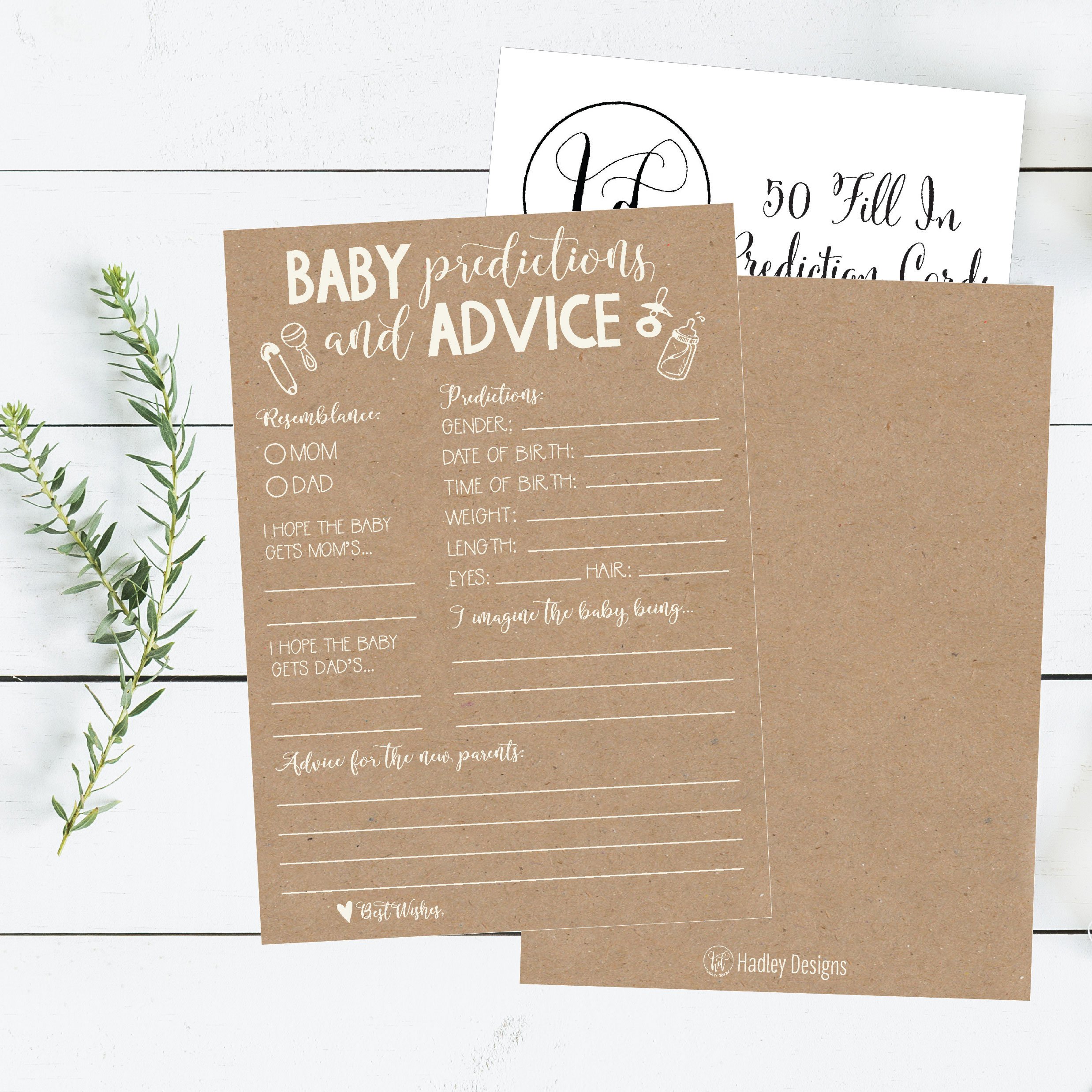 50 Rustic Advice and Prediction Cards for Baby Shower Game, New Mom & Dad Card or Mommy & Daddy To Be, For Girl or Boy…