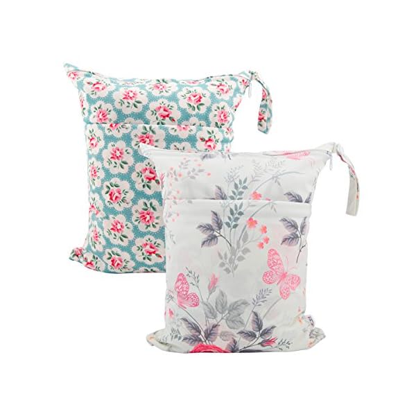 ALVABABY 2pcs Cloth Diaper Wet Dry Bags Waterproof Reusable with Two Zippered Pockets Travel Beach Pool Daycare Soiled…