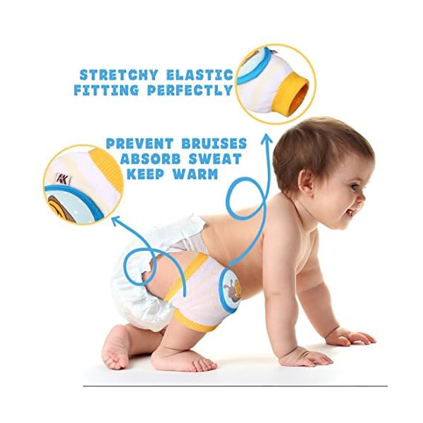 COMFORTABLE FOR BABY: Stretchy elastic & soft cotton w/ quite a lot of padding to fit most baby crawlers