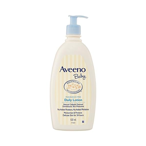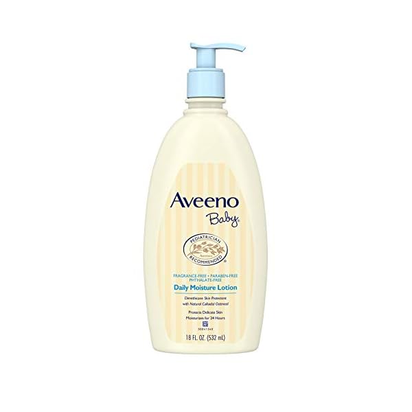 18-fluid ounce bottle of Aveeno Baby Day-to-day Moisture Lotion with natural colloidal oatmeal and wealthy emollients features a naturally nourishing formula that moisturizes for a full 24 hours