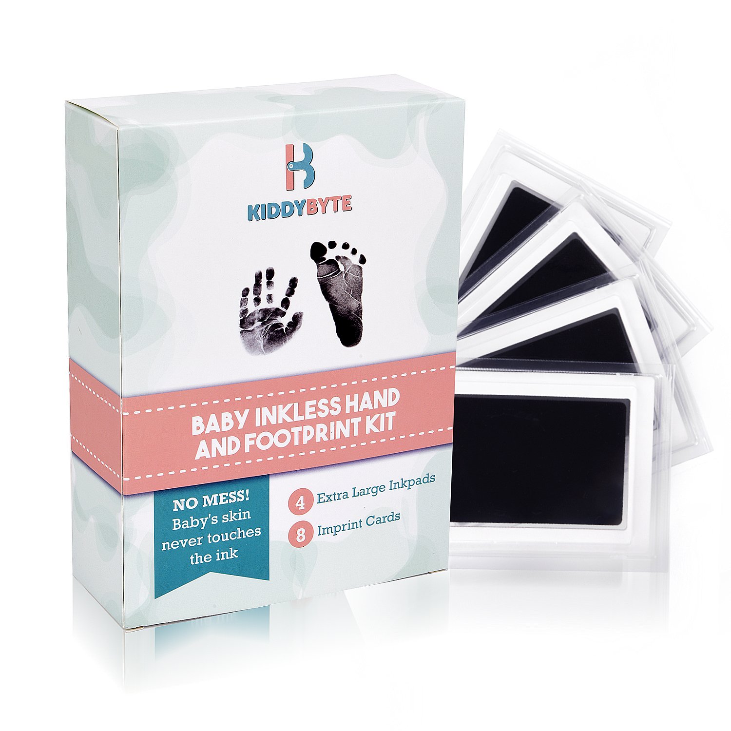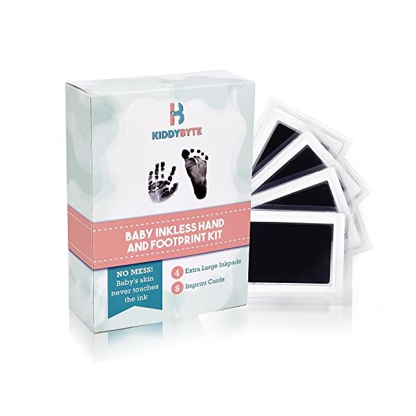 Baby Inkless Footprint & Handprint Kit with 4 Extra Large Ink Pads and 8 Imprint Cards by KiddyB, Perfect Baby Shower…