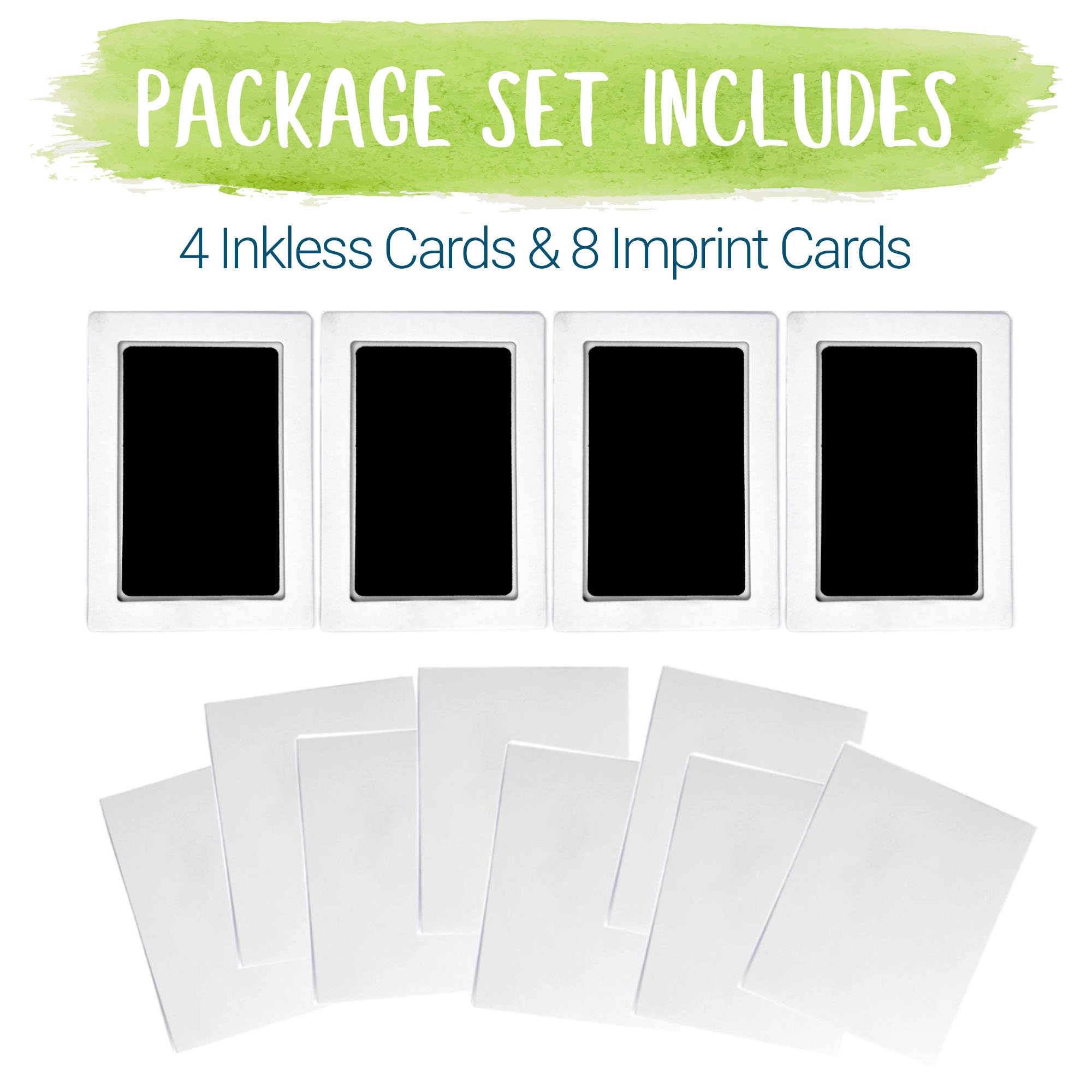 The 8 white cards and the pack of 4 of Super BIG Ink Pads (3 by 4.5 inches) have been designed exclusively to capture cute, memorable prints of the little members of your family. The imprint surface and POWERFUL ink absorbency level guarantees a “smooth operation” for baby foot/hand prints.