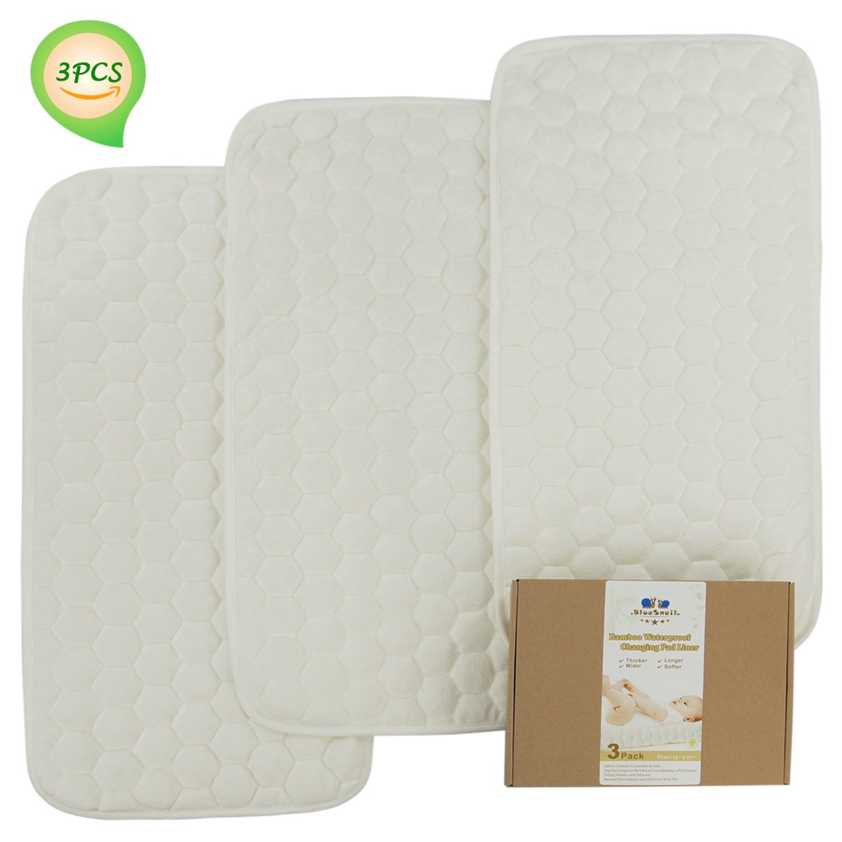 BlueSnail Bamboo Quilted Thicker Waterproof Changing Pad Liners, 3 Count (Snow White)