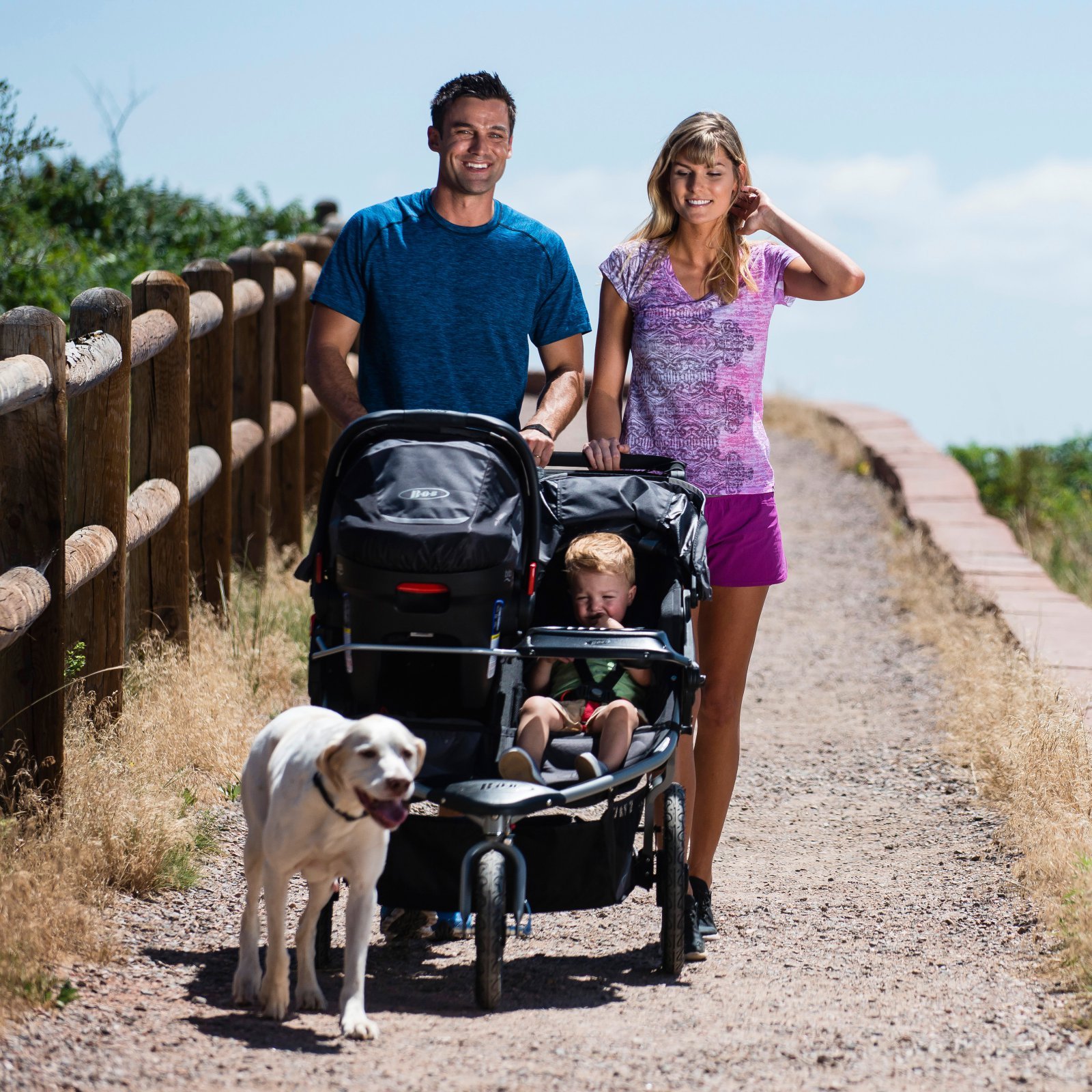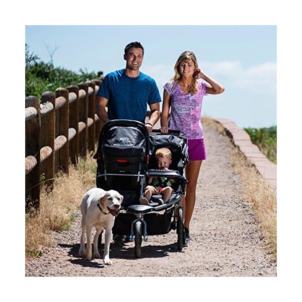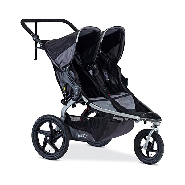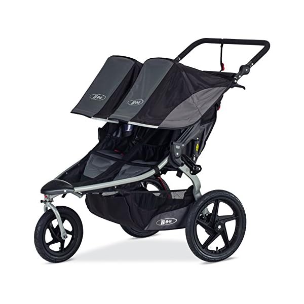 If it takes two tots to Shuttle, the B.O.B. 2016 Revolution Flex Duallie Stroller – Black is a should-have. This jogging stroller is perfect for running errands or jogging on the trail thanks to a swiveling front wheel that maneuvers tight spots easily but also locks in place when more stability is needed. The high-strength aluminum alloy frame folds up in two easy steps and you’ll get rid of the front wheel to make it even more compact. The seats are nicely padded, ventilated, and feature poly and dobby weave fabrics with a water-repellent coating and open-cell foam padding. Recline the seats easily with one-hand operation. Parents of all heights will find a comfortable fit with the padded, adjustable handlebar. This stroller is Shuttle-system able when you add a Car Seat Adapter and an infant car seat. Renowned quality and performance make BOB the number one jogging stroller. Additional Features Interior seat width: 12.5 in. (per seat) Enhanced quick-release design makes it easy to securely attach or detach both the back and front wheels Achieve correct front wheel alignment with simple twist of a knob Wrist strap for extra safety whilst running Buckle locks stroller in closed, folded position Coil spring and elastomer core shock absorbers provide 3 inches of wheel Shuttle Adjustable shock release for occupants 0-40 lbs. and 41-70 lbs. Front tire: 12.5 diam. x 1.75W in. Rear tires: 16 diam. x 1.75W in. Thru-axle front wheel hub with quick-release lever for tool-less install or removal To be used with infants 8 weeks and older Add infant car seat to use from birth 100 lb. total weight capacity (occupant plus luggage) Maximum occupant height: 44 in. Additional limited-time savings reflected in current price. For newborns 8 weeks & up and children up to 50 lbs. per seat and up to 44 in.. 100 lb. total maximum weight (occupants and cargo) capacity. Shuttle system-able with BOB DUALLIE Infant Car Seat Adapter (sold one by one).