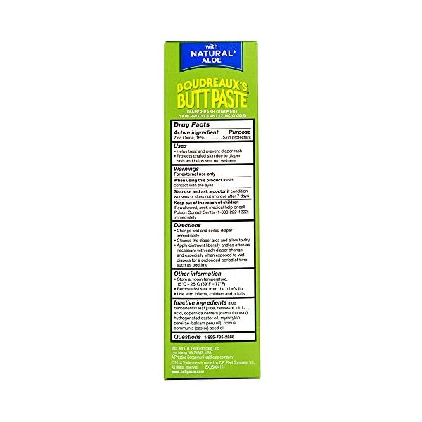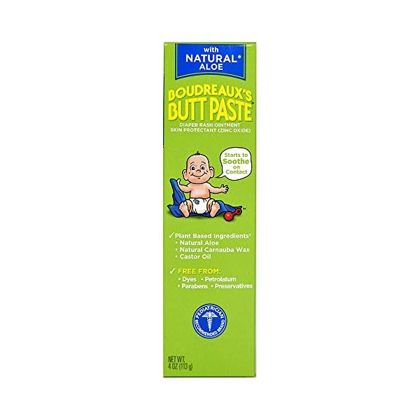 Boudreaux’s Butt Paste with Natural* Aloe Diaper Rash Cream, Ointment for Baby, 4 oz Tube