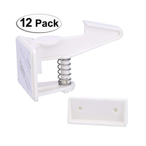 12 Pack Cabinet Locks Child Safety Latches – Vmaisi Baby Proofing Cabinets Drawer Lock with Adhesive Easy Installation…