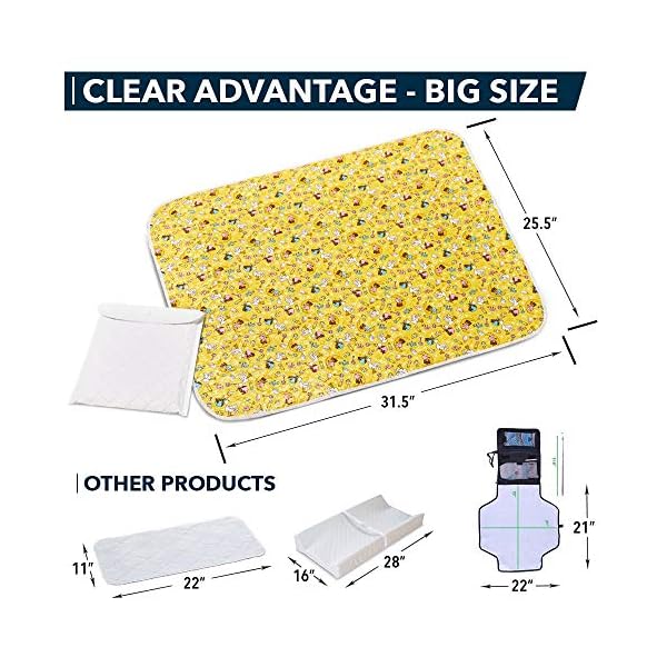 Portable Changing Pad for Home & Travel – Waterproof Reusable Extra Large Size 31.5″x25.5” Baby Changing Mat with Reinforced Double Seams -Change Diaper On The Go – Unisex Boys&Girls-Storage Bag