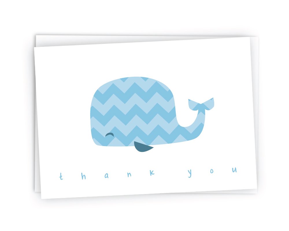 Colorful Chevron Whales Baby Thank You Note Cards – 48 Cards & Envelopes (Blue)