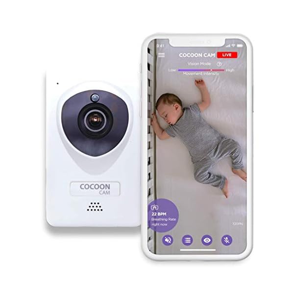Know that your baby is breathing. Cocoon Cam is the only monitor that shows your baby’s breathing rate in real time, provides you with instant alerts to know when they are waking or crying, and has Safe HD video and two-way audio. Plus, Cocoon Cam is contact-free, without a uncomfortable wearables for your baby to kick off.