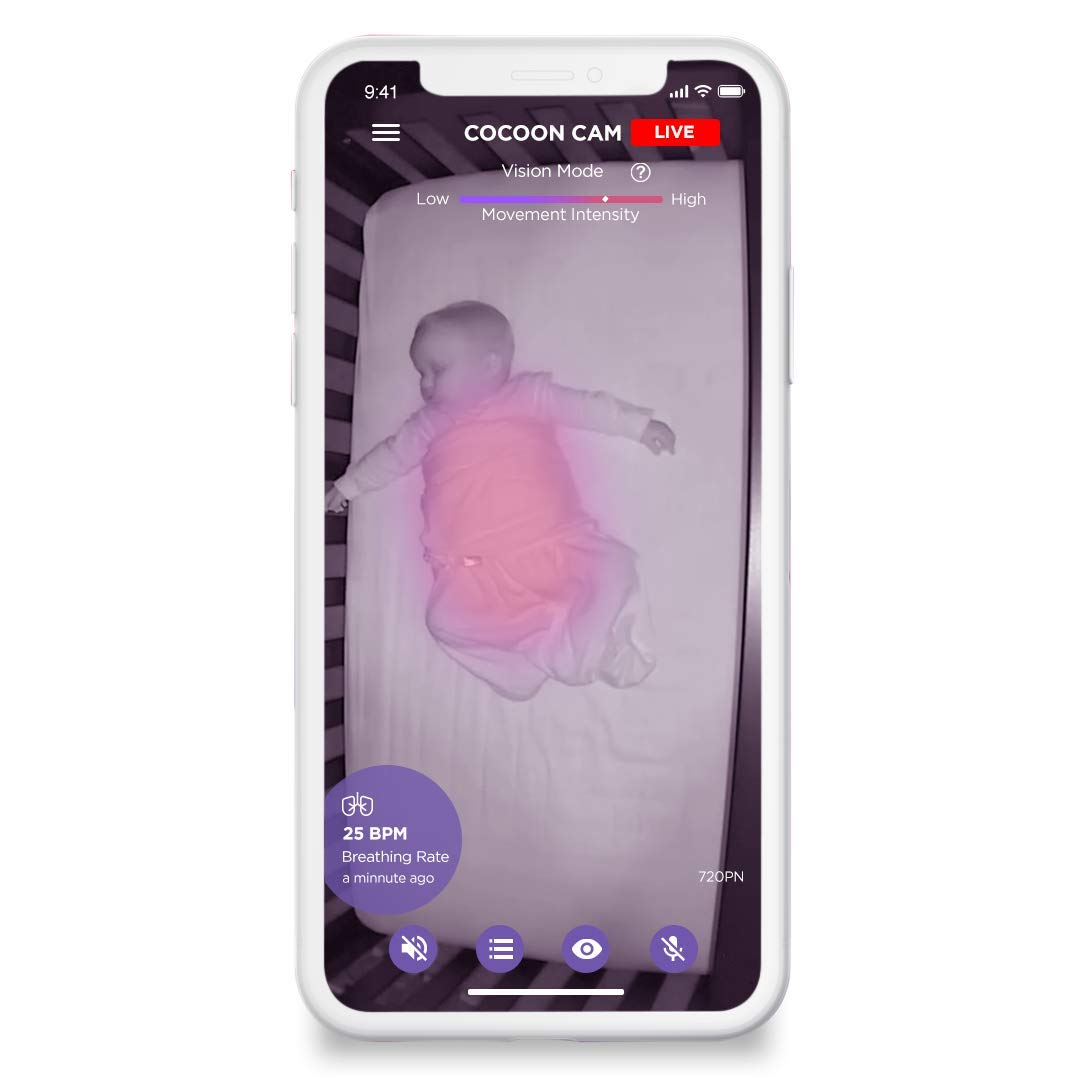 (Updated 2019) SEE THE MOVEMENT OF YOUR BABY with Vision Mode. A heatmap shows exactly where your Cocoon Cam is detecting your baby’s movement.