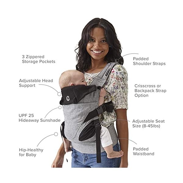Contours Journey is the ultimate baby carrier for parents and baby. The Journey carrier fits newborns starting at 8 lb, and adjusts to fit children up to 45 lb. No infant insert is required for your newborn, because of this less fabric and more comfort for you and your little one. Our extra-large, infinitely adjustable UPF 25 sunshade will also be moved up or down to give baby maximum coverage, and is unlike any other sunshade you’ll be able to find. When not in use, the sunshade will also be tucked away in its own zippered pocket, giving you a lot of room to keep your things handy in the two other zippered pockets. The Journey carrier offers five different carrying options Newborn, a hip-healthy Seated Position, Face Forward, Hip, and Back. Acknowledged by the International Hip Dysplasia Institute, the Contours Journey supports baby’s development and hips in an ergonomic position. As the manufacturer, Contours Baby stands at the back of all our products with great customer service and toughen. If there is anything we will do that will help you, please let us know.