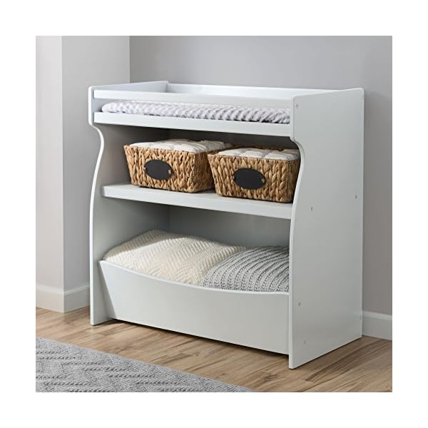 Changing table includes one fixed shelf and an open storage bin at the bottom Strong & sturdy wood construction