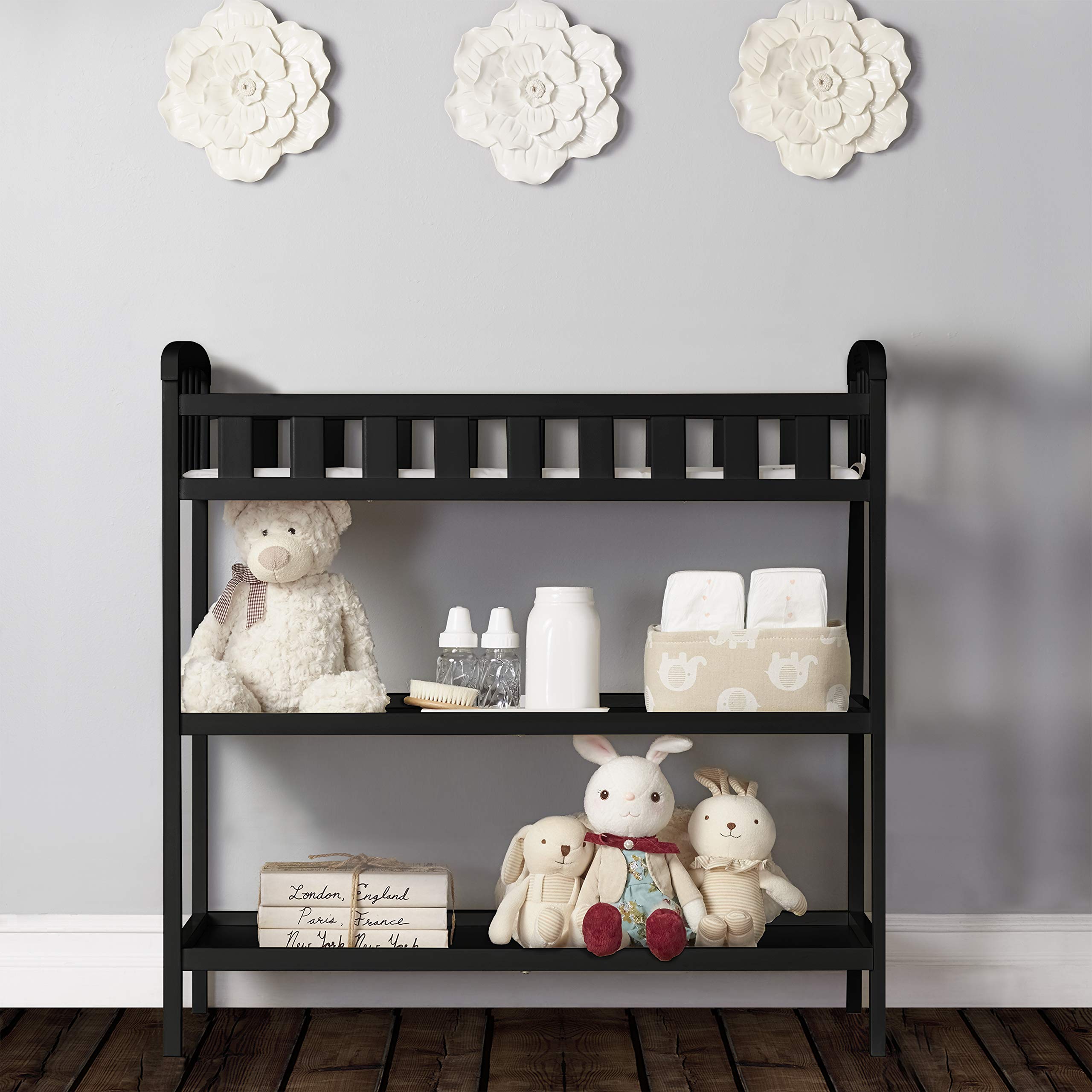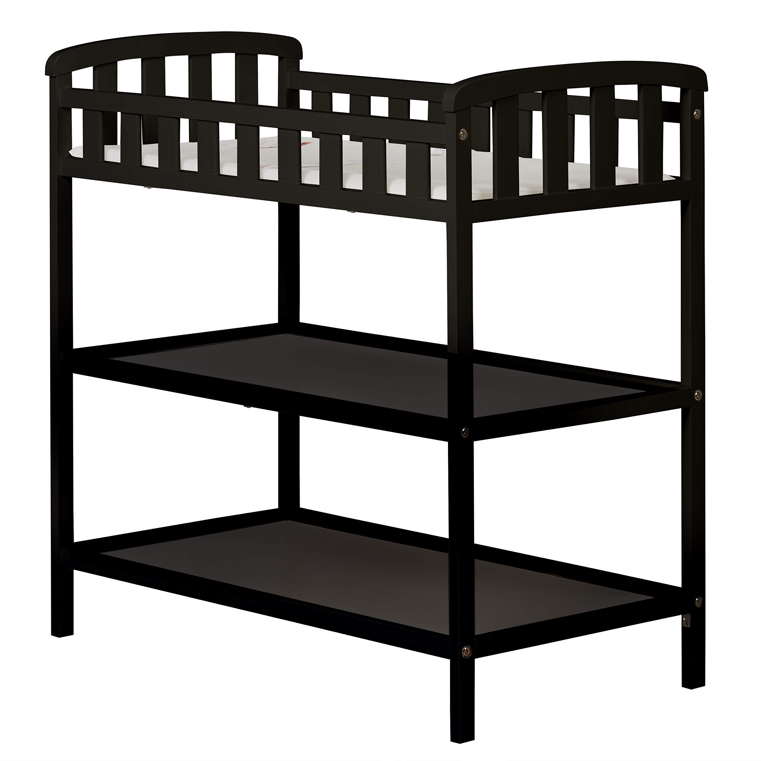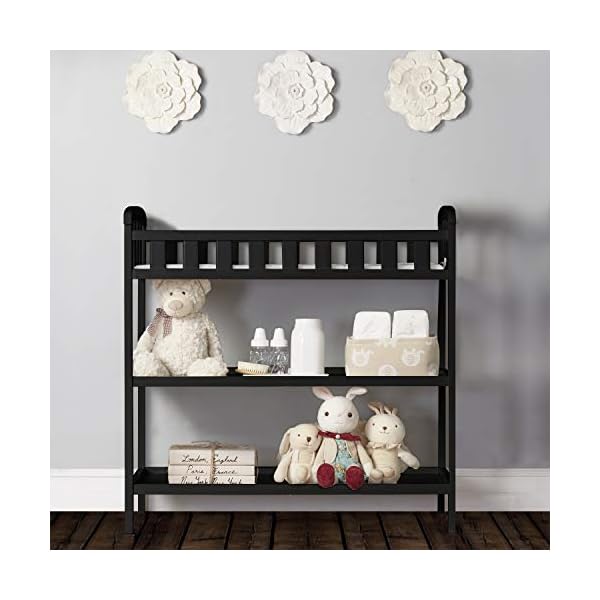 Dream On Me Emily Changing Table In Black, Comes With 1″ Changing Pad, Features Two Shelves, Portable Changing Station, Made Of Sustainable New Zealand Pinewood
