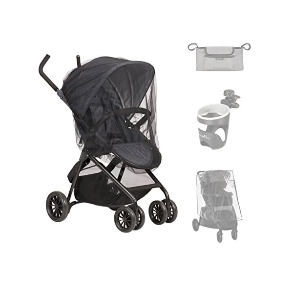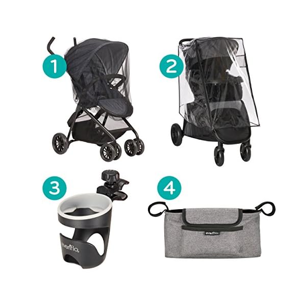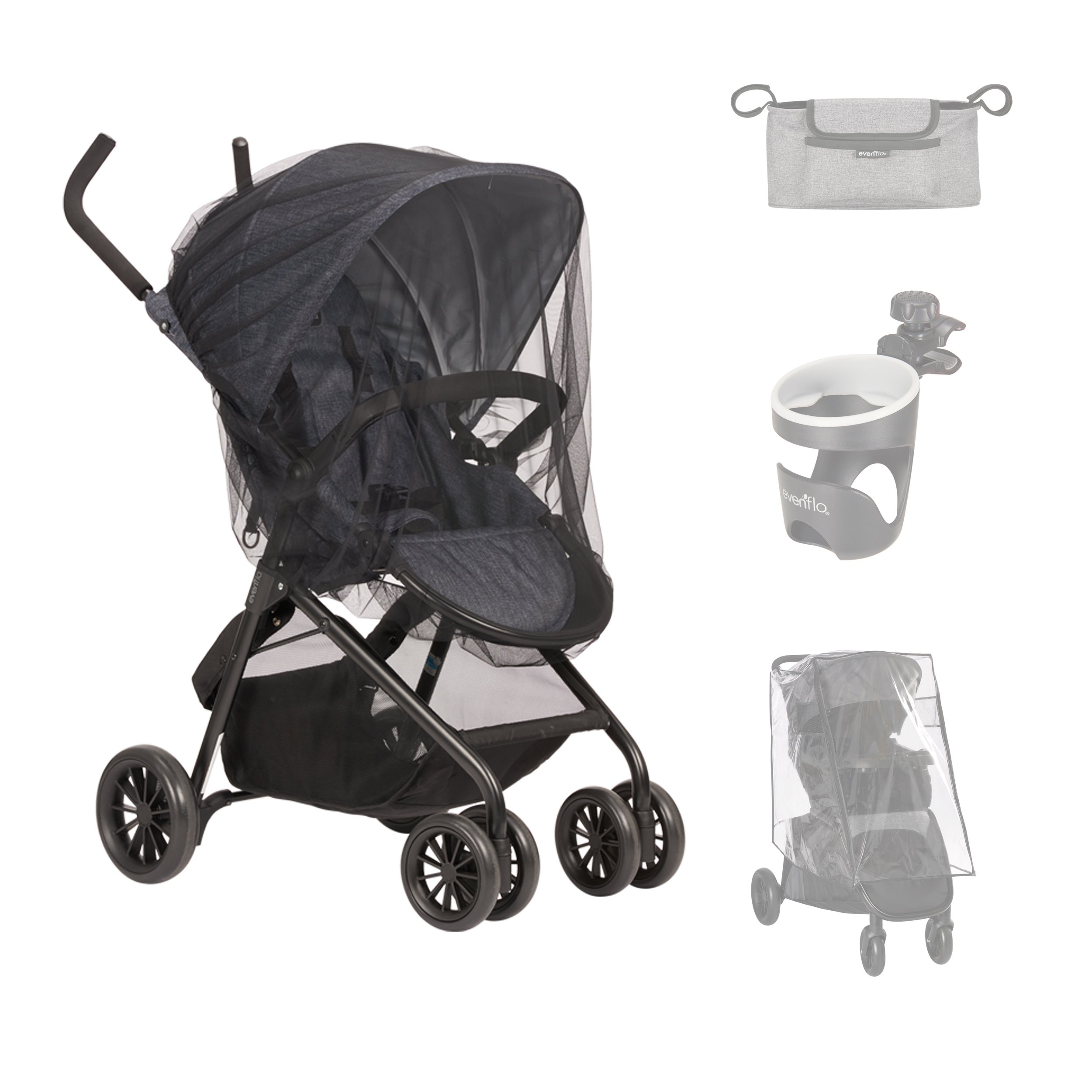 The Evenflo Stroller Accessories Starter Kit contains your whole stroller needs at a great value. The stroller organizer console provides additional storage options for on a regular basis essentials, and the universal cup holder is a will have to for beverages. Easily switch between the stroller netting or weather shield depend-ing on the day to keep your child secure from outdoor elements. All items are a universal size and fit most single strollers. Top of the range materials are easy to wipe clean, ensure durability and get rid of stretching or shrinking.