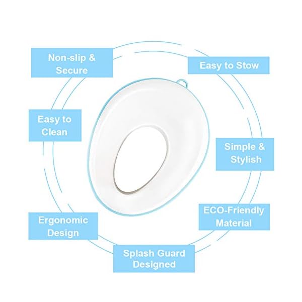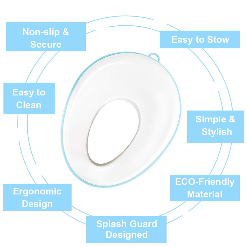 UNIVERSAL DESIGN to fit most standard toilet seats. The stylish aqua color can be used both for boys and girls, helps them learn how to use toilet bowl in restroom with more confidence when you are out and about.