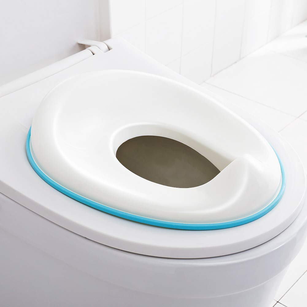 UNIVERSAL DESIGN to fit most standard toilet seats. The stylish aqua color can be utilized both for boys and girls, helps them learn to use toilet bowl in restroom with more confidence when you are out and about.