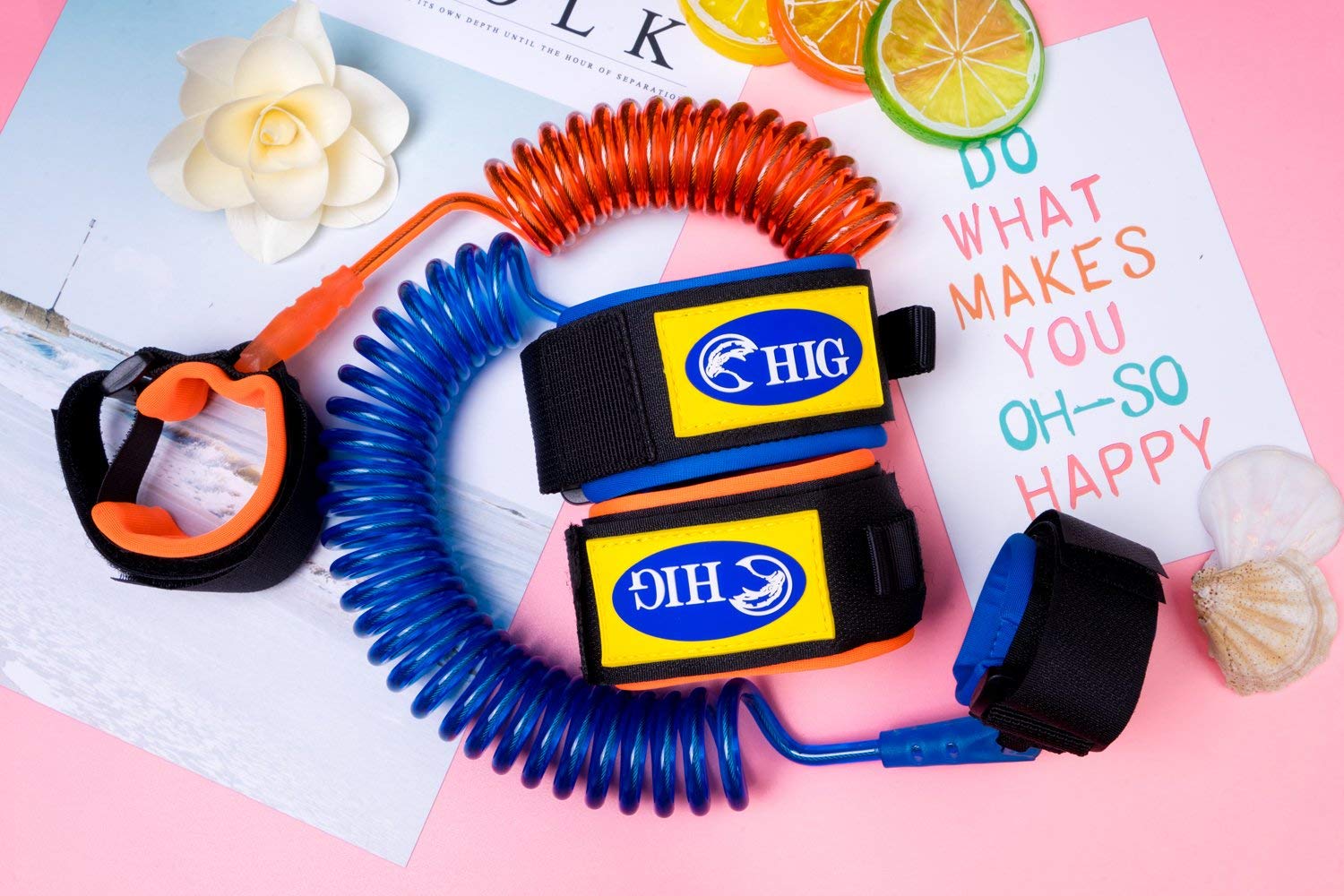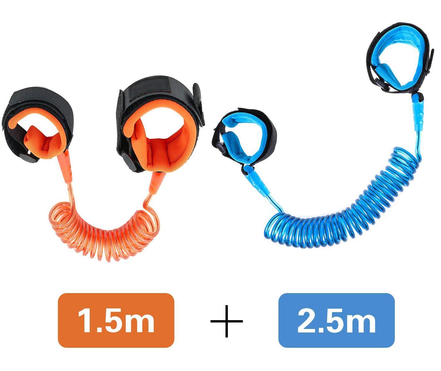 Easy to use:It has two comfortable cuffs, you only need to connect the anti lost wrist to adults and baby’s wrist. The orange shrink chain can be extended to 4.9ft and the blue can be extended to8.2ft.