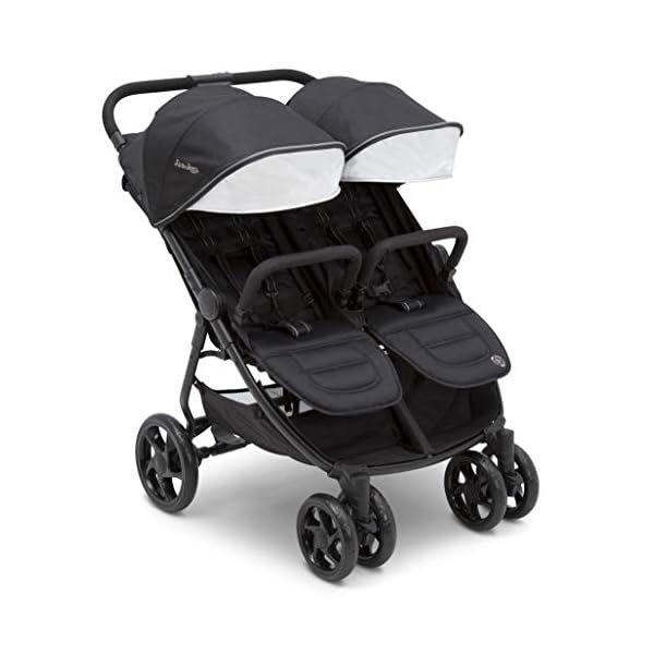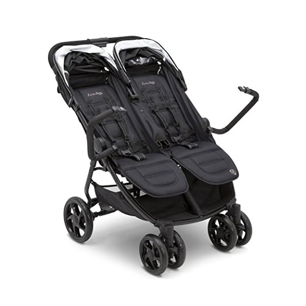 The J is for Jeep Brand Destination Ultralight Side x Side Double Stroller makes it easier than ever to go places, do things and see sights with all your family. Loaded with features that make errands with multiple children a breeze, this double stroller offers independently reclining seats and foot rests to cater to each child’s needs and comfort. Two oversized canopies with extended able SPF 50 sun visors protect little ones from harsh rays, rain or snow whilst peek-a-boo windows help you keep watch over your children as you walk. Large enough to be comfortable for two children, slim enough to fit through 30″ doorways with ease, and sturdy enough to be your go-to everyday stroller, the J is for Jeep Brand Destination Ultralight Side x Side Double Stroller grants you the freedom to make every go back and forth an adventure. Easily adapt to varying terrain with the stroller’s front swivel-lock wheels, unlock for easy maneuverability on even surfaces, and then lock for added stability on bumpy surfaces. And if you end up done exploring, this double stroller with an easy, compact fold closes in seconds and stands upright. The stroller’s lightweight aluminum frame, foam handles and carrying strap make loading it in the car or taking it on vacation a stress-free task. Since 1941, the Jeep brand has been a symbol of freedom and expression. Influenced by a love of the great outdoors. J is for Jeep Brand products are created for life’s little adventurers.