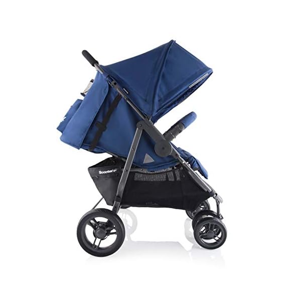 The Joovy ScooterX2 double stroller has a new stylish graphite grey frame and bigger wheels. The larger 7-inch front wheels and 9.5-inch rear wheels make it easier to maneuver than before. Its lightweight and narrow design allows the stroller to fit through any door at the same time as providing ample room for your kids. The width of the stroller is 30 inches, so there is not any wish to fold it to get inside a door. The wheels have sealed bearings so pushing two kids totaling 90 pounds is easier than you must consider; and, the double front wheels make the stroller extremely stable. This is especially important if your kids climb in and out of the stroller by themselves. (We have included a removable bumper bar to eliminate this possibility too!) The basket is bigger than any stroller basket available on the market, period. The canopy is bigger than any other stroller available on the market, too. Each seat is fully adjustable, independent of the other, and each has its own in-seat mesh pocket and adjustable 5-point harness. You’re going to love the one-hand recline system that locks into an infinite number of positions – all of the way down to a near flat napping position. We have also included two cup holders for the parents and two zippered pockets for phones, wallets, snacks, etc. Folding takes just seconds with the one hand fold feature. The Scooter X2 offers you the features you demand, the fashion you expect and the quality Joovy is known for – all at a reasonable price.