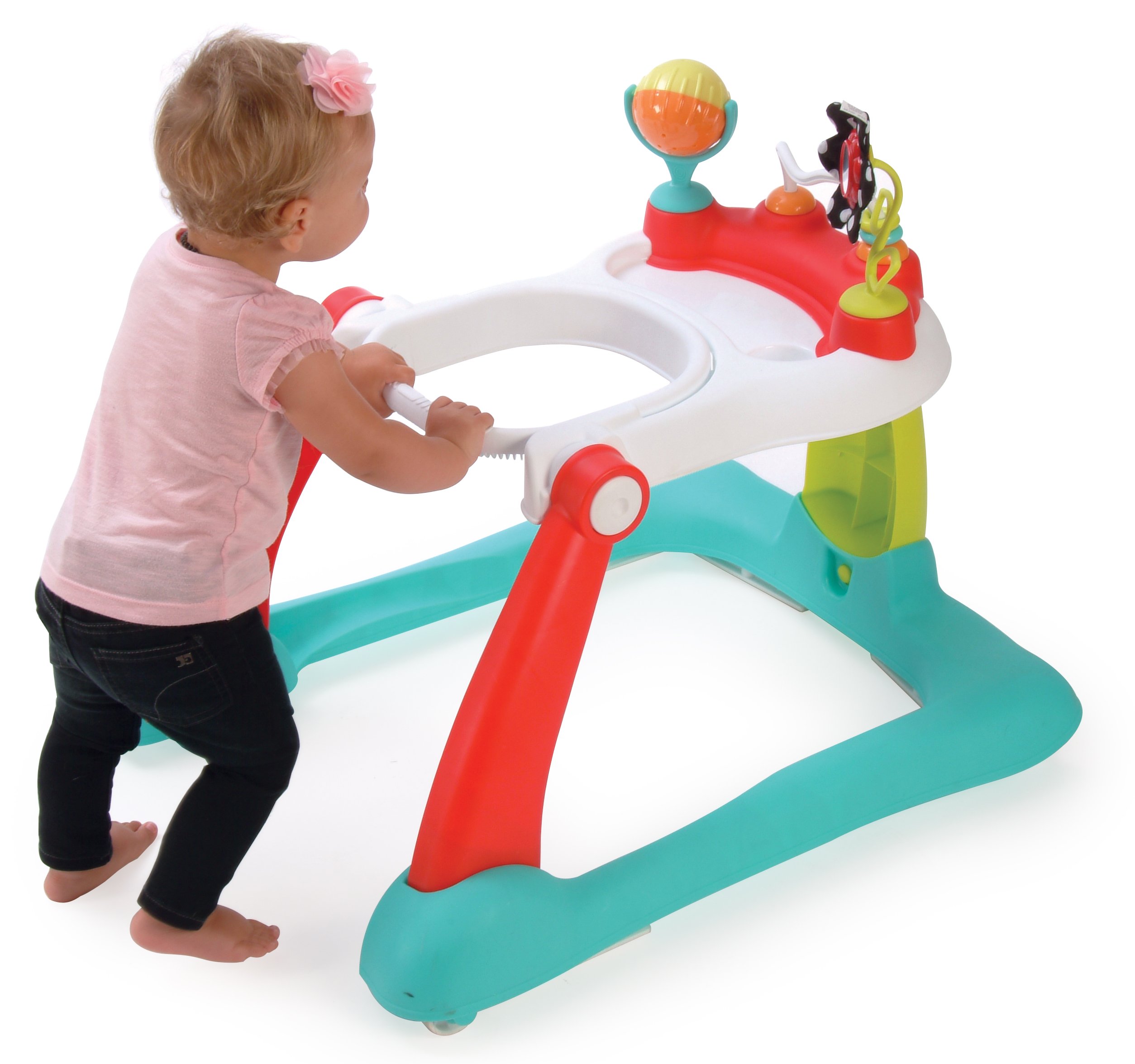 FUN TOYS & ACTIVITIES – Entertain baby with fun developmental toys include upright flower mirror toy with crinkle petals and textured stem, spinning ball for batting play and bead bar for motor skill development