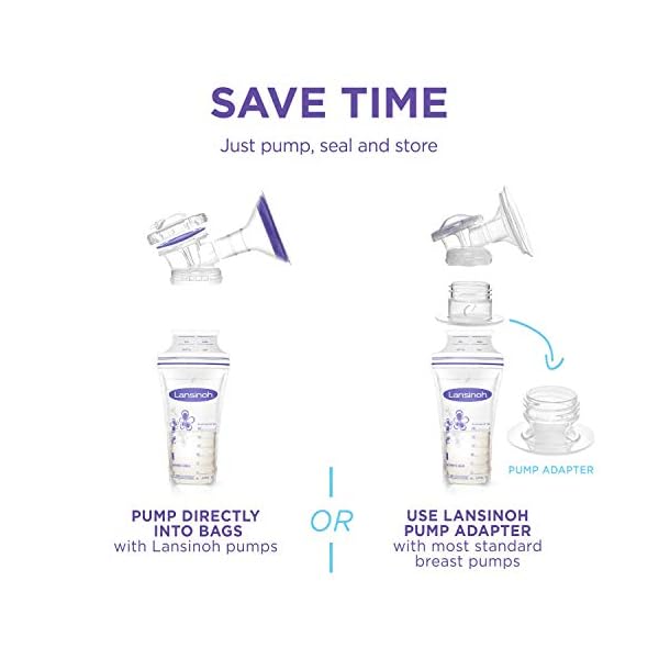 SAVE TIME & PUMP DIRECTLY INTO BAG: Pump in an instant into Lansinoh breastmilk storage bags for convenience and reduced waste. Stand or lay flat for compact storage. Easy to use with write-on label and convenient pour spout.