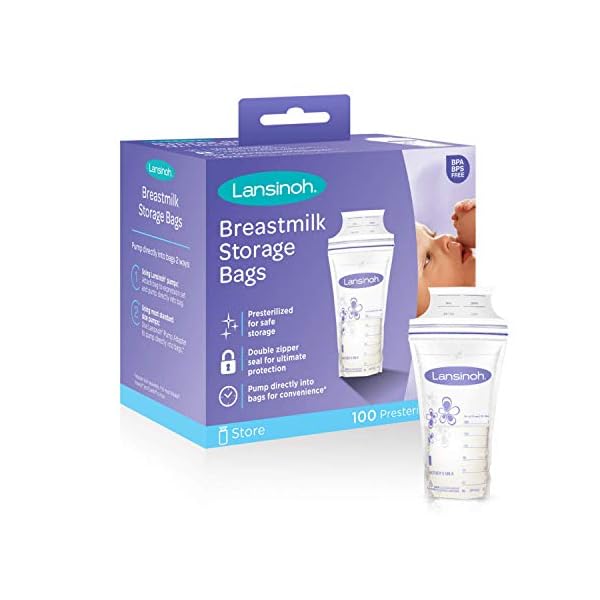 Lansinoh Breastmilk Storage Bags, 100 Count, 6 Ounce, Easy to Use Milk Storage Bags for Breastfeeding, Presterilized…