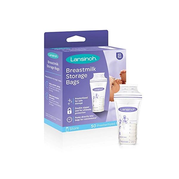 Lansinoh Breastmilk Storage Bags, 50 Count, 6 Ounce, Easy to Use Milk Storage Bags for Breastfeeding, Presterilized…