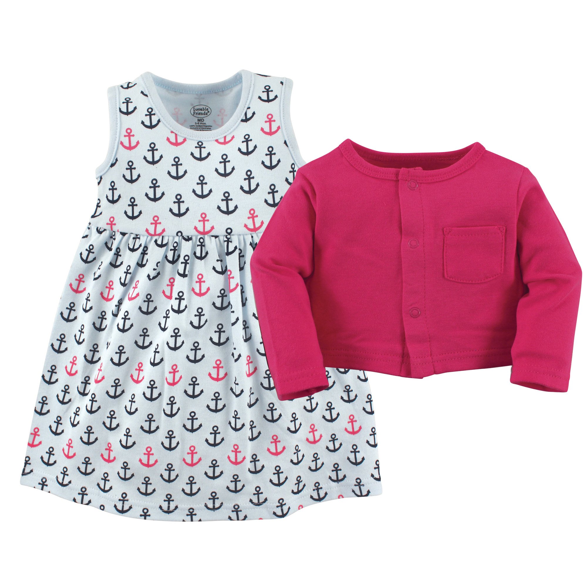 Luvable Friends Baby and Toddler Girl Dress and Cardigan