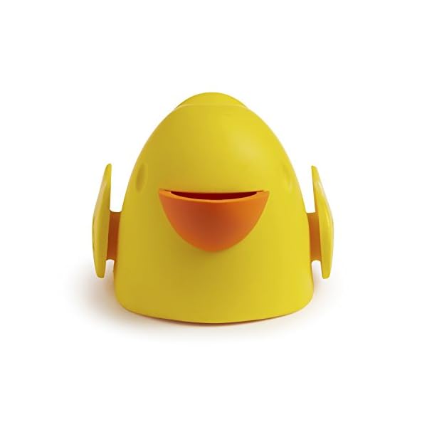 Duck-shaped spout guard covers faucet to help prevent bumps and burns