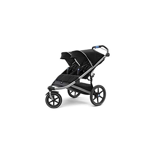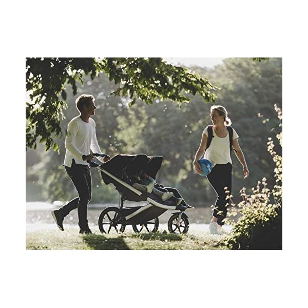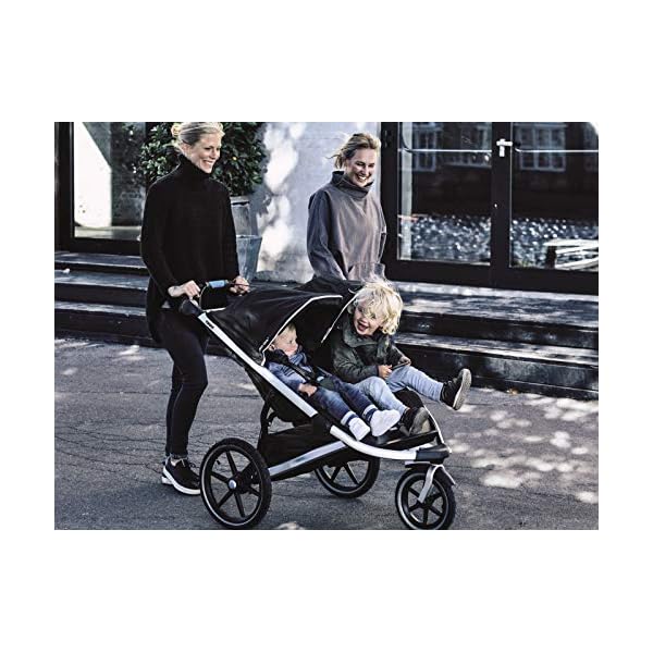 The Thule urban Go with the flow 2 is the perfect all terrain stroller for the active family. Whether you’re searching for a jogging stroller to take on your favorite path or a full size stroller to easily navigate right through town, The Thule urban Go with the flow 2 delivers. Designed with a comfortable seat, a padded 5-point safety harness, and a multi-position canopy with ventilation, your precious cargo is sure to enjoy the ride. The Silent, one-handed recline is perfect for naps on the go. This three wheel stroller provides an ultra smooth ride thanks to the large 16″ Rear wheels and suspension system. The front swivel wheel makes it easy to maneuver through town and locks into place for jogging. The integrated twist hand brake gives parents regulate of hilly terrain The adjustable handlebar provides an ergonomic grip for any sized Adult. A magnetic peekaboo window allows you to check on your child without disturbing them, even at the same time as they sleep. Bring all you want for the day in the large cargo storage bin with a Zip-Top closure to keep all contents protected, even when folded. Storing and transporting a Sport stroller has never been easier thanks to the one-handed compact fold. Simply slide and twist the release bar and the stroller folds in half. Remove the rear tires in seconds to make it even more compact. The Thule urban Go with the flow 2 can be used as an Infant stroller from birth when the use of car seat adapters (sold one by one). It can also transition into a toddler stroller and enhance a weight capacity of 75 lbs.