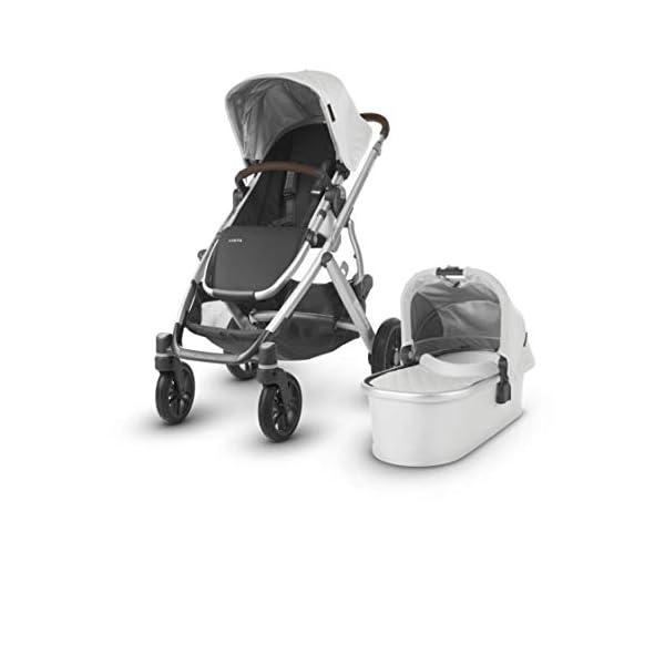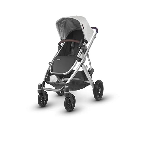 The UPPAbaby VISTA stroller is designed to transport up to 3 children- all at the same time as strolling like a single. The included bassinet is the very best lay flat solution.Suitable from 3 months to 50 lbs Expandable seat selections that allow for two forward and parent-facing, reclining seats; two MESA infant car seats, two bassinets and countless other combinations Performance Shuttle System compatible with MESA Infant Car Seat – direct attachment, no adapters important 100% full-grain leather accents Full-size forward and parent-facing Toddler Seat One-handed, multi-position recline Extendable, pop out UPF 50+ sunshade Adjustable canopy and one-button telescoping handlebar One-hand release, pivoting bumper bar for simple loading Fabrics are removable and washable Shock-absorbing front and rear suspension Extra-large, easy-get entry to basket with 30 lbs weight limit Combines aluminum with magnesium for optimal lightweight, durable performance One-step fold, without or with Toddler Seat attached, and stands when folded All-weather protection with included Toddler Seat Rain Shield and Bug Shield Bassinet: Suitable from birth, up to 20 lbs, or until infant can push up on hands and knees, whichever comes first Features a moderately longer mattress, creating a more comfortable environment for growing baby Zip-out, water-repellant inner liner and boot cover are easy to take away and clean Perforated mattress pad, vented base and canopy allow for added breathability Extendable, pop out UPF 50+ sunshade Depth and ventilation provide a secure overnight sleeping solution Included Bassinet Bug Shield and Storage Bag