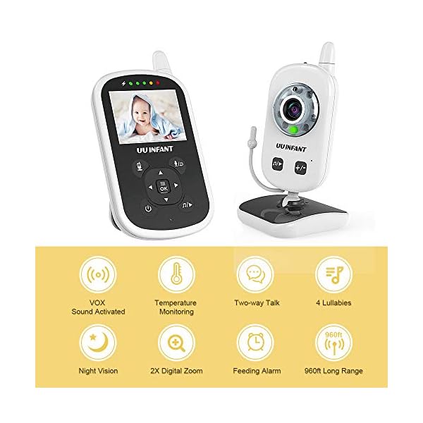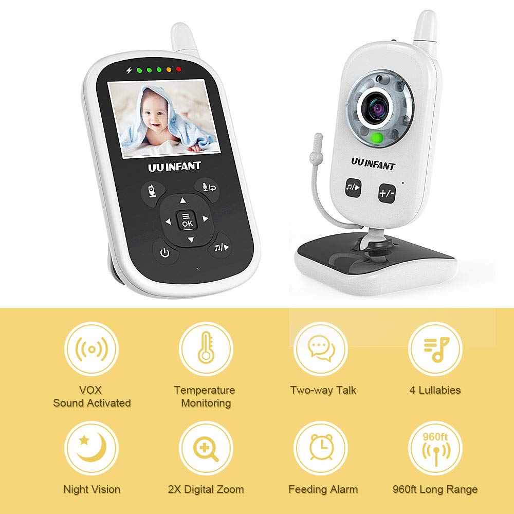 HAVE A SENSE OF CALMNESS knowing your little angel is safe & sound with the UU Infant high definition color video baby monitor. We remastered the classic baby monitor design with state-of-the-art lens and the latest 2.4GHz FHSS Technology for super-stable, ultra-secure connection and supremely-detailed digital vision & sound.